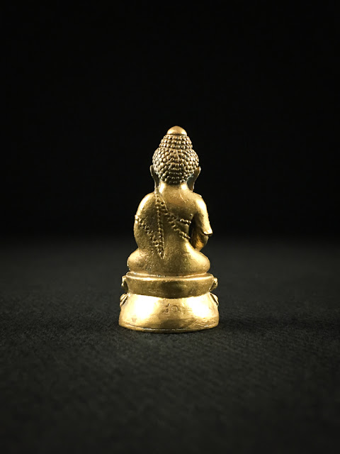 this Phra Kring is made from Sacred Thong Pasom ( Mixed Metals ) material with melt Holy Yant Sheets, strongly consecrated by LP Pong in year 2560. front with Sacred Phra Kring image, back with Series Number at Base, and with Hand Carve Sacred Yant by LP Pong himself at bottom. supplied with Temple Box.